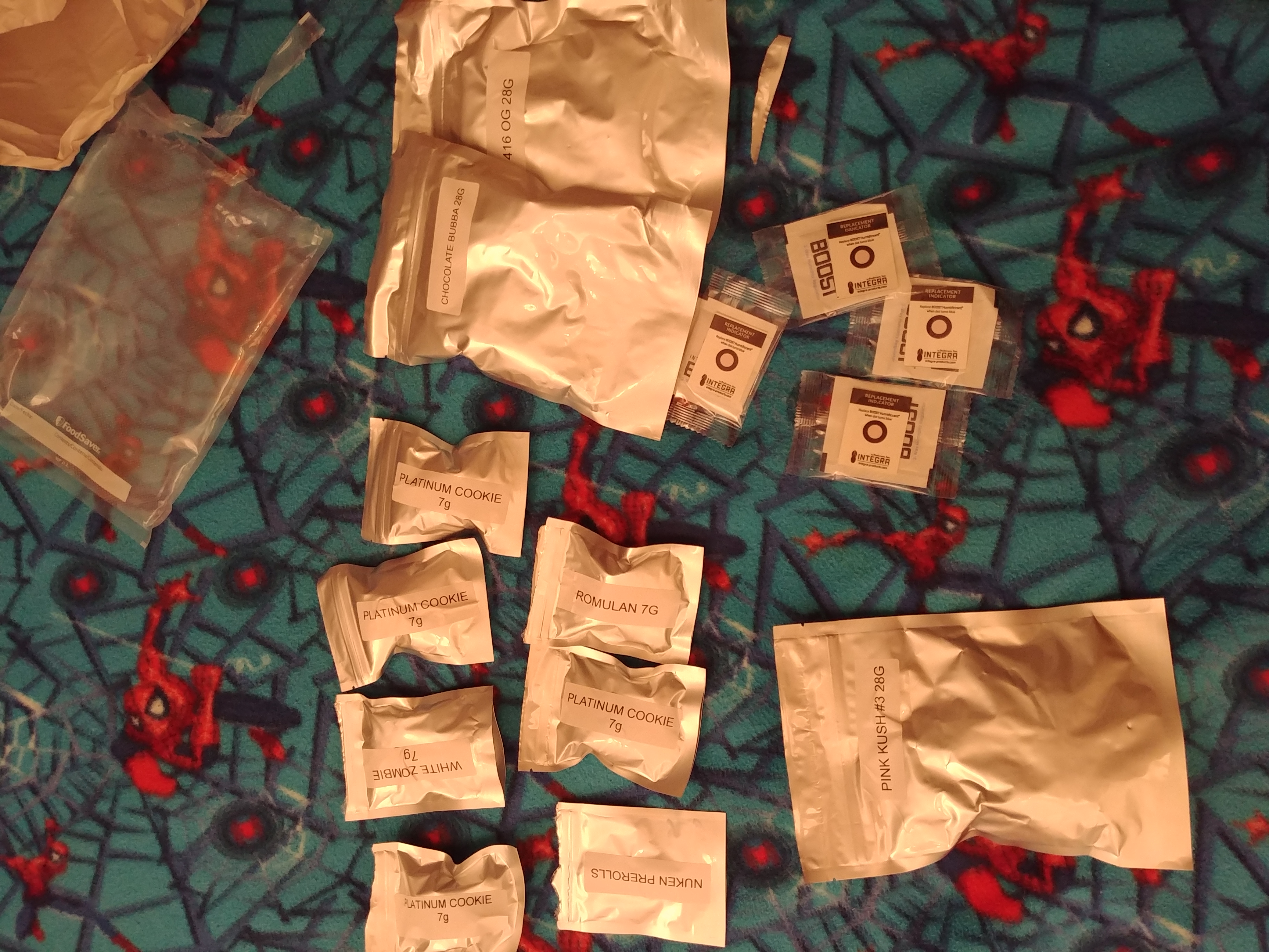 Very happy to have found this mom. On my first order, i had 1oz platinum cookie, 1oz black widow and 2 pack of gummies. First of all i really liked the flower... For the price ive never found such beautiful and good to smoke product. My only downside of that order was the gummies, i liked them tastewise, but they didnt get me high at all. I have to say the packaging of the first order was bad, but the problem was fixed for the second order!!! I didnt take any picture of the first order but im glad to show you pictures of my 2nd as im really happy with it again!! 10/10 for those guys. They also have great customer service!! The rocketman is a very cool dude and will answer to all your question. So for my second order i took 1oz chocolate bubba, 1oz platinum cookie(new batch), 1oz pink kush, 1 oz 416 OG, and a 7g of blue dream. Because i bought for more than 399$ they give me 14 g of free weed. 7g x2 of really good Romulan and white zombie. They also included 5 integra pack and 3 preroll joint of Nuken. ROMULAN