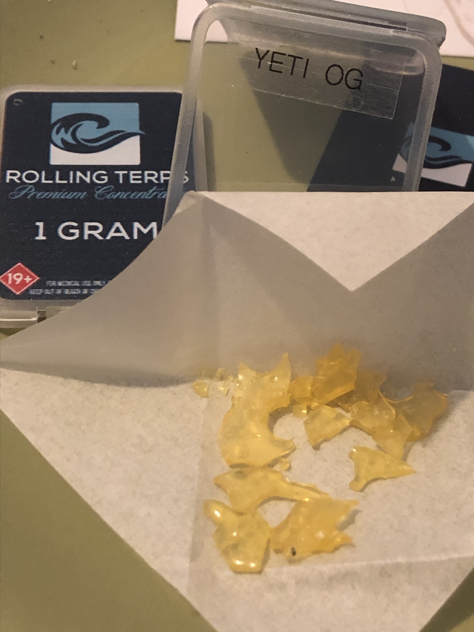 Yeti OG : This is the cleanest most clear and naturally dank/terpy shatter I have ever enjoyed!, I am so glad I won the 1G prize GIVEAWAY ON IG & Really found out about these guys/gals as they are really changing the game with some nice Very dank and very very flavorful product, Worth noting it doesn't seem to be false terps like overpowering fake terps you get with some other distillates and shatter / waxes/batters etc live resin what have you!.. They seem to have a very nice process down and the quality of product truly speaks for it sellf , So once I tried their first "FREE" Gram I won I instantly got onto their site and was curious about distillate,batter,and the terpy clear shatter I've seen once before!.. So I inquired they also have an influencer program which really helped me get my meds @ a Fair price!! 50% discount for being part of that program!!! , I Have personally NEVER had a shatter with such an enjoyable taste and overall dank appeal!!