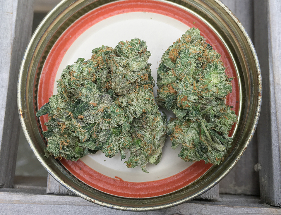 Visual: It looked very light and cakey with its light greens and bright greens. Everything was surrounded by lots of frosty white crystal and there were tiny little patches of light brown hairs. The buds were small – medium sized and they had a tiny bit of a squish to them.